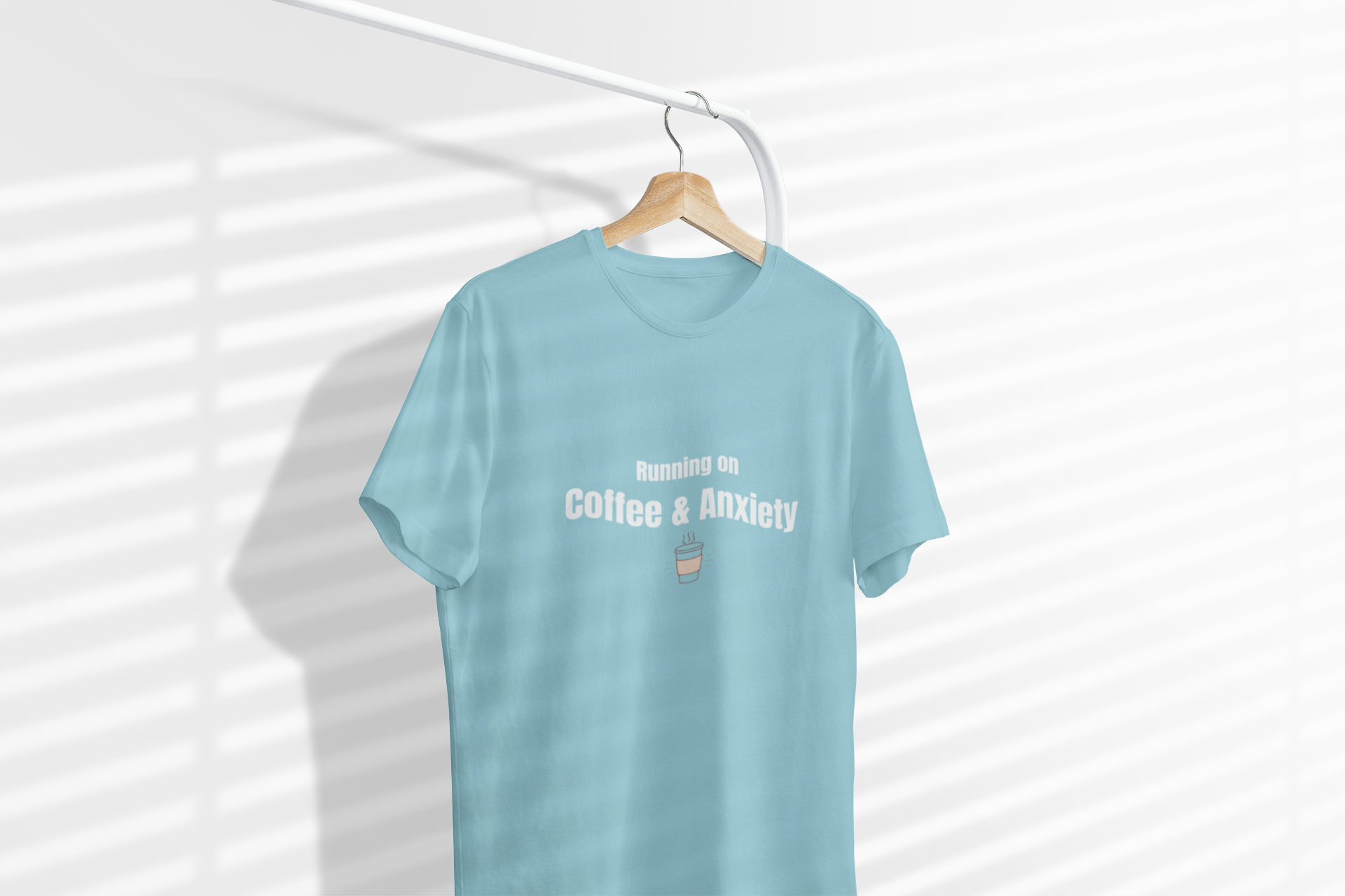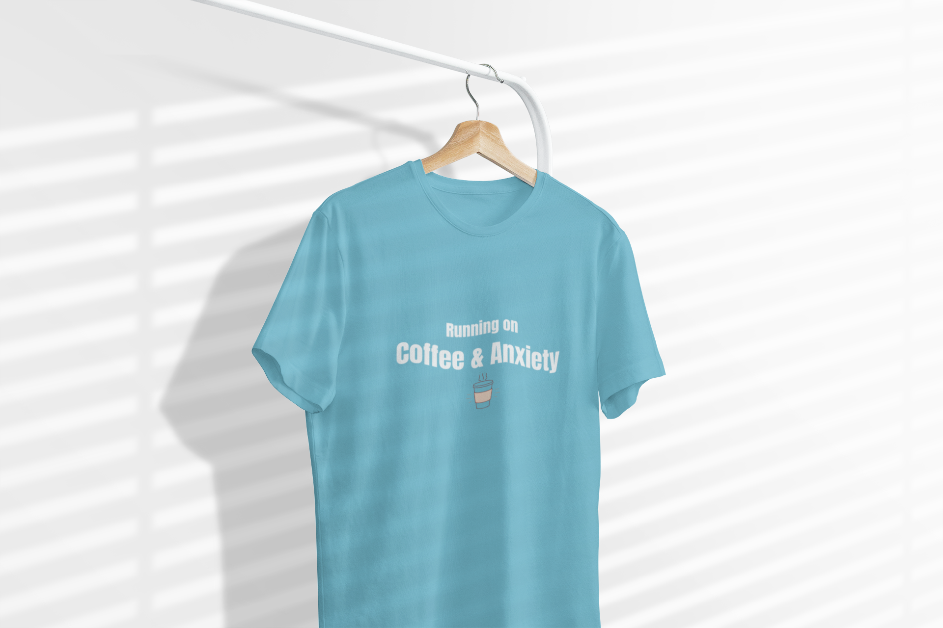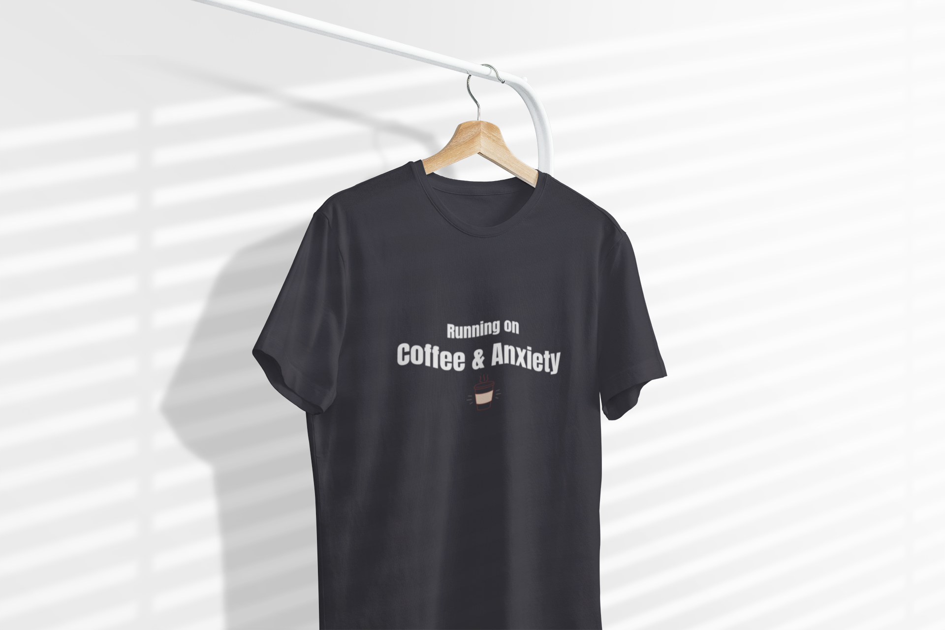 Running on Coffee & Anxiety Shirt – Funny Anxiety Tee, Coffee Lover Shirt, Mental Health Humor T-Shirt