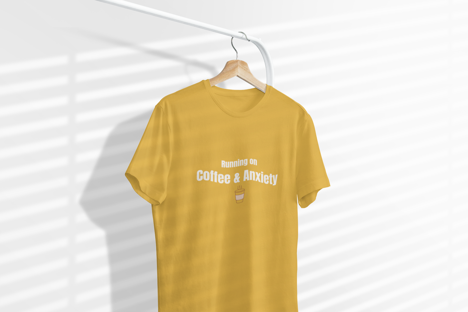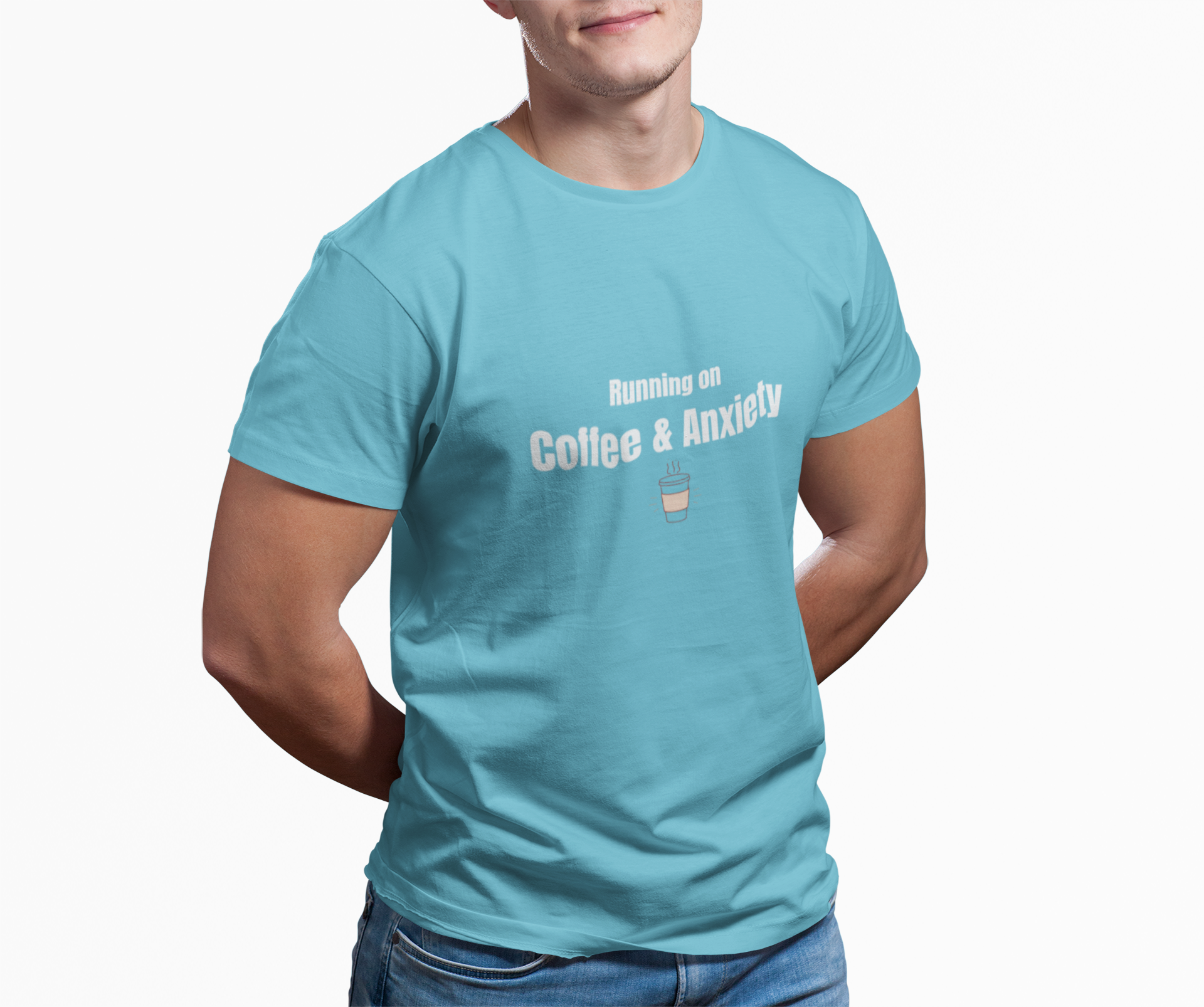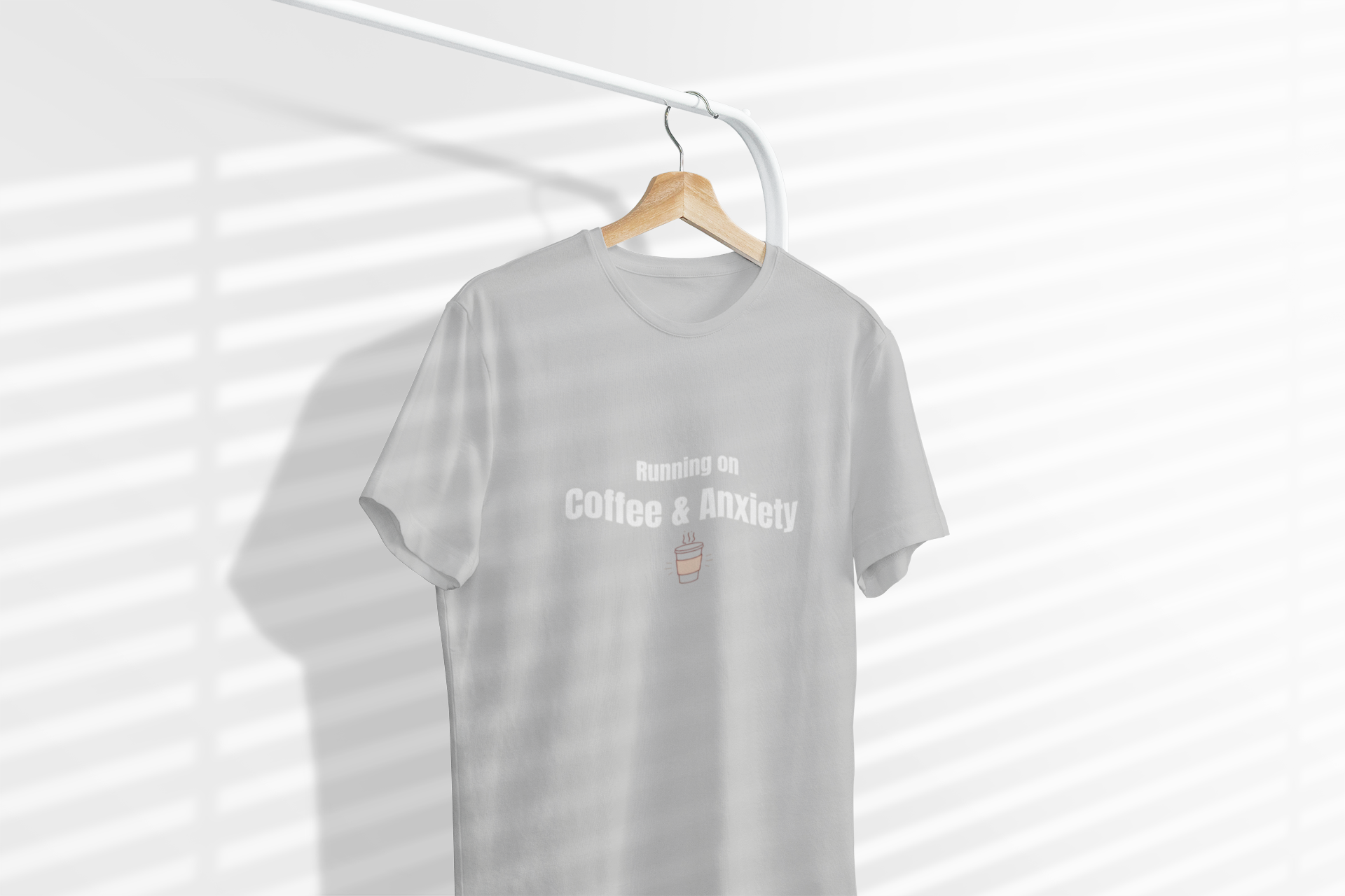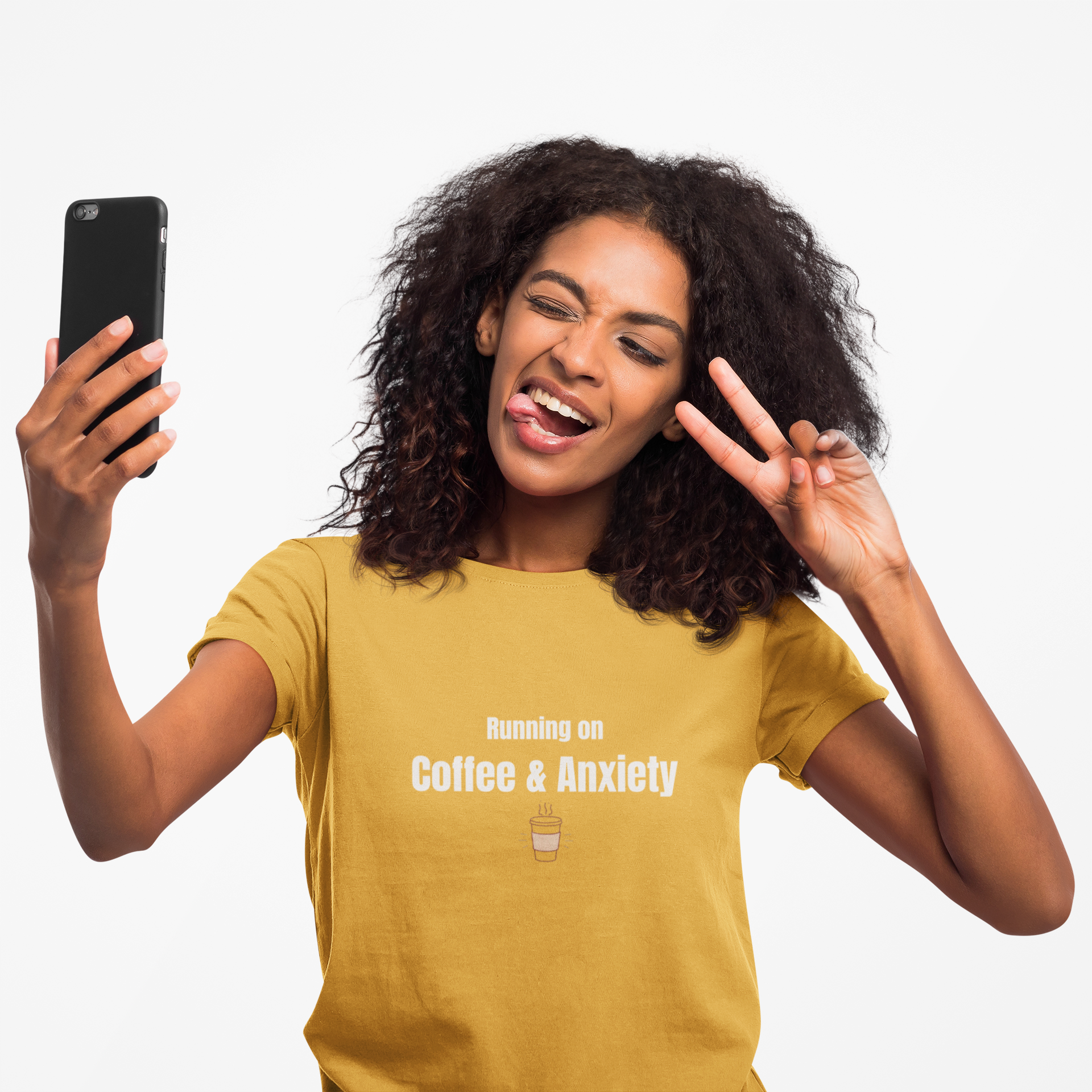 Running on Coffee & Anxiety Shirt – Funny Anxiety Tee, Coffee Lover Shirt, Mental Health Humor T-Shirt